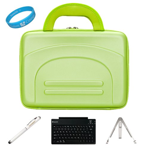 Nylon Eva Green Durable Cube Carrying Case for Toshiba AT200 10.1-inch Android 3.2 Wireless Touchscreen Tablet + Executive White Stylus Pen with Laser Pointer and LED Light + Universal Silver Tablet Stand + SumacLife Wireless Bluetooth Keyboard + SumacLife TM Wisdom*Courage Wristband